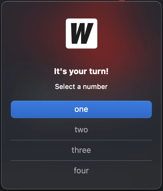 the second button is shown as default. When return is pressed, the value "two" is returned.